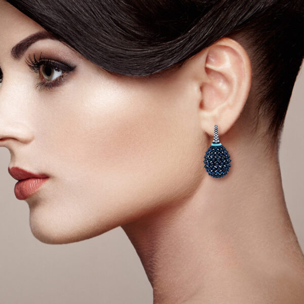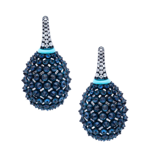 UMRAO Blue Sapphire/Diamond Reverse Setting Earrings