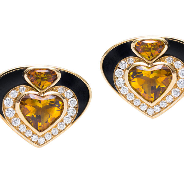 MARINA B Dia / Citrine / Tourmaline / Onyx Heart Earrings