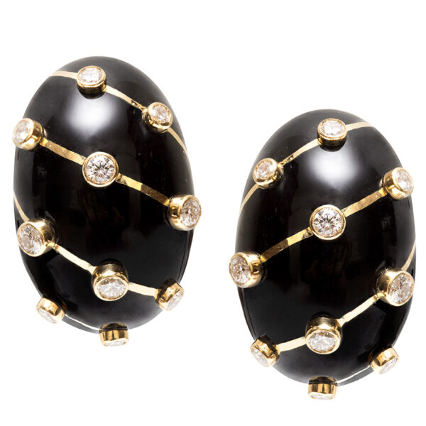 SCHLUMBERGER Black Enamel / Diamond Earrings