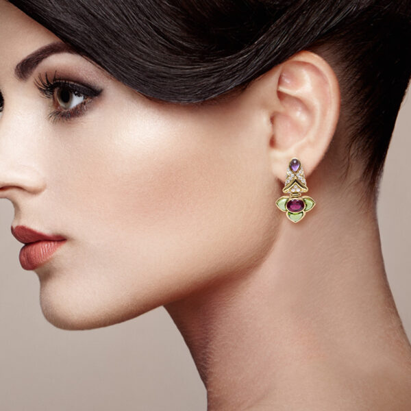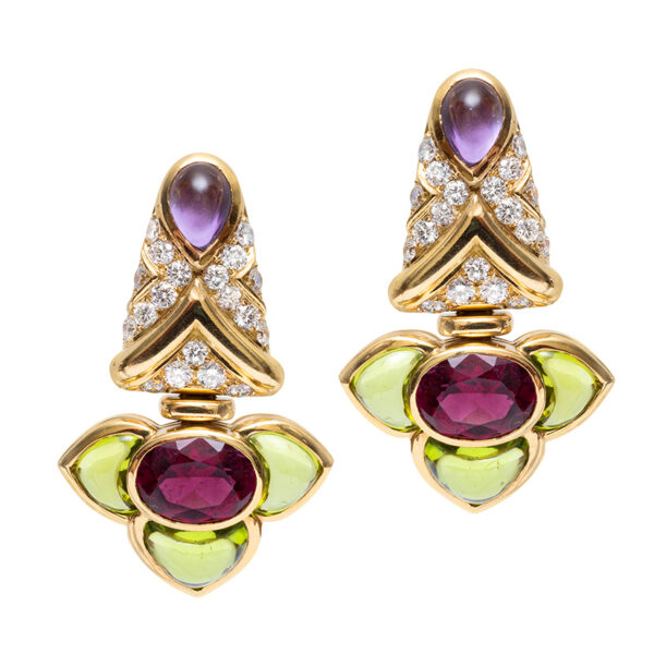BULGARI 18k Diamond / Tourmaline / Peridot / Amethyst Earrings