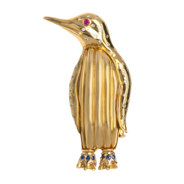 CIPULLO / CARTIER Ruby/Sapphire Penguin 18k Brooch