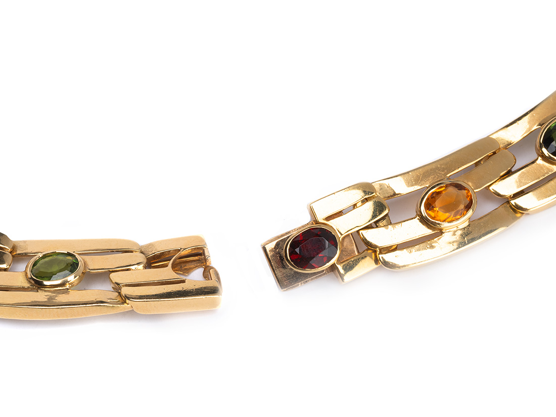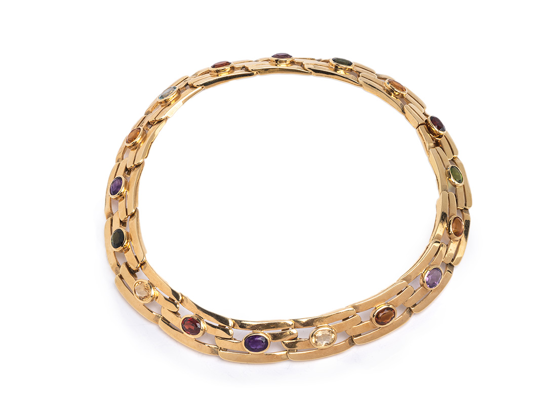 18K Large Link Gemstone Necklace