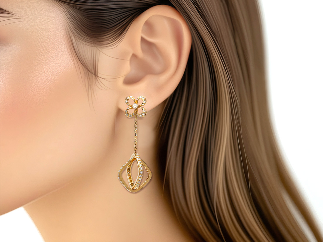 LOUIS VUITTON 18k Flower Diamond/Pink Sapphire Earrings